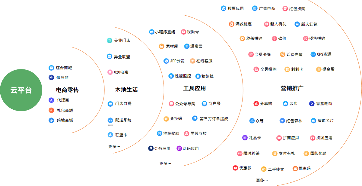 云平台,致力于打造一个为移动互联网从业者提供全链路软件+服务的供应链平台,为实体赋能,加速商业体线上线下场景融合!