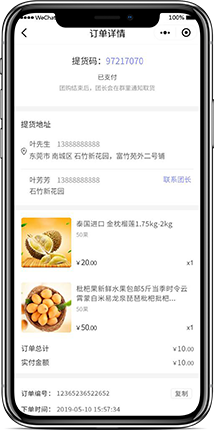 订单到货将自动通知,支持用户取货码取货,团长一键取货等一系列便民服务。