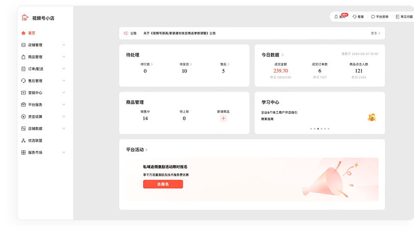 【视频号小店】是微信视频号团队为商家提供商品信息展示、商品交易等产品能力的技术服务,全方位支持商家在视频号场景内开店经营。